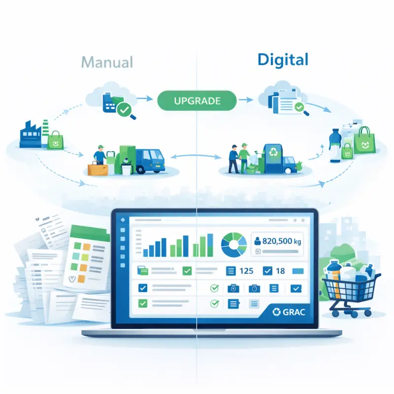 GRAC hỗ trợ rà soát nghĩa vụ EPR, tính toán khối lượng, so sánh phương án thực hiện, kết nối mạng lưới thu gom – tái chế, truy xuất dữ liệu và chuẩn bị bộ bằng chứng phục vụ báo cáo EPR.