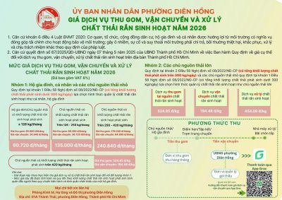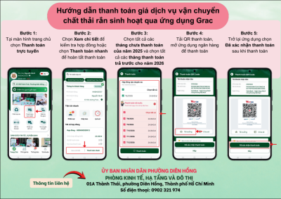 Hướng dẫn thanh toán giá dịch vụ vận chuyển chất thải rắn sinh hoạt tại phường Diên Hồng năm 2026